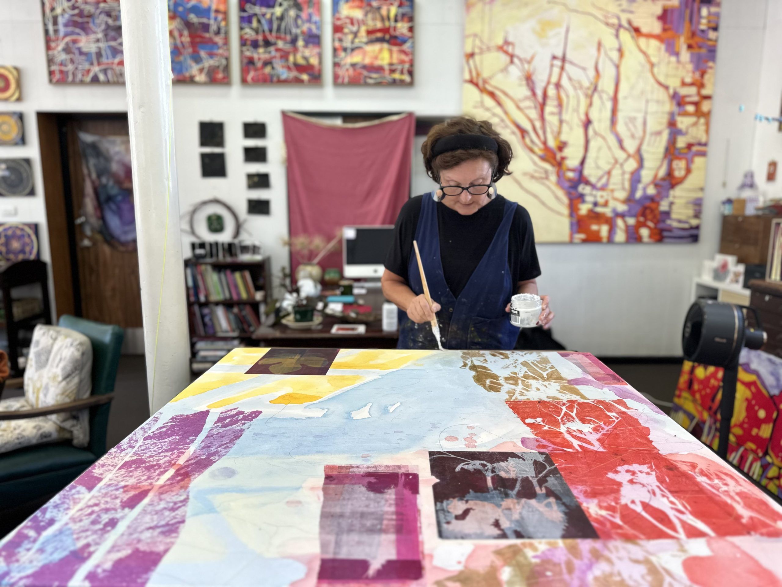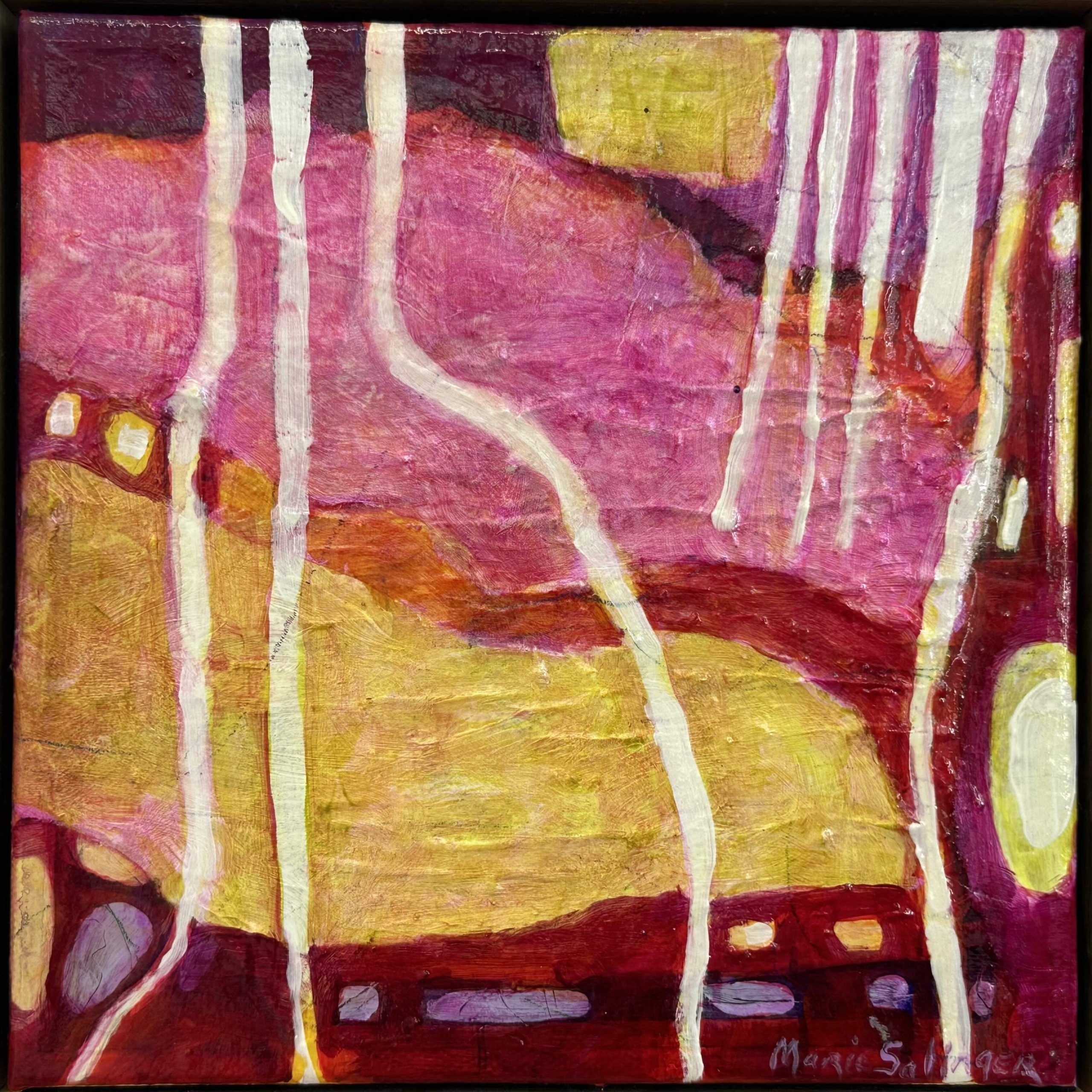 As a multidisciplinary visual artist based in North East Victoria Marie Salinger’s creative practice incorporates painting, printmaking, collage and photography. Working intuitively she responds to the ebb and flow of life deeply influenced by the Beechworth Gorge and the historic gardens at Mayday Hills where her studio is situated. Salinger’s work echoes the organic qualities of nature and explores the notion of transience and the interconnectedness of all life forms.